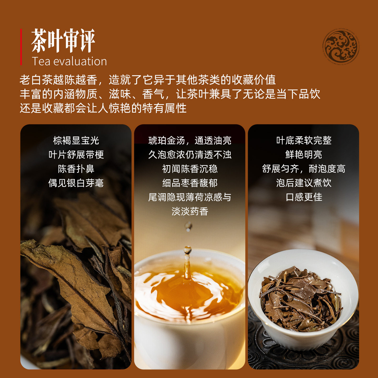 香气高雅持久,滋味鲜爽甘醇,茶汤色泽清亮,叶底嫩绿鲜活。