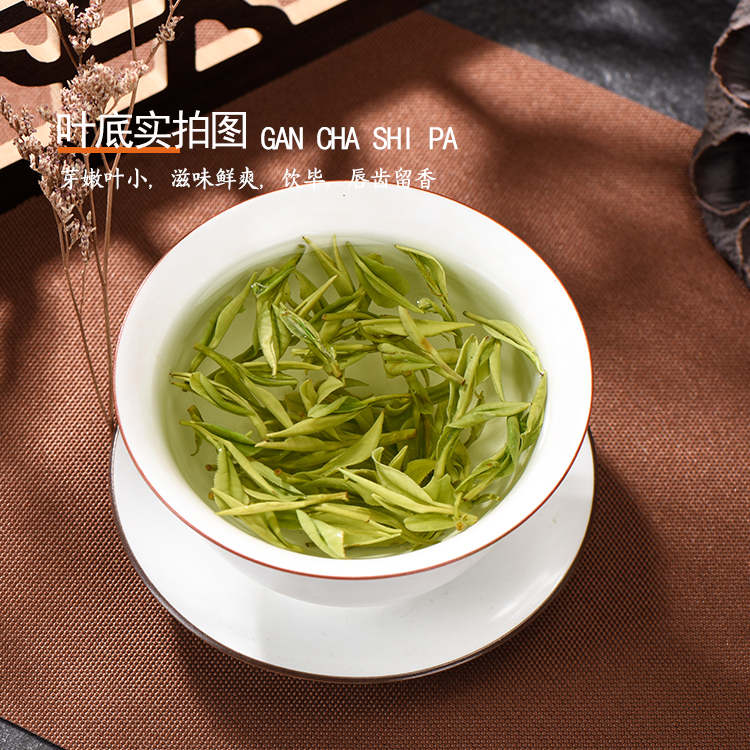 茶叶色泽翠绿,香气清新,滋味鲜爽,茶汤色泽较浅。
